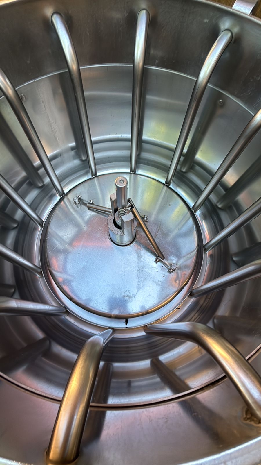 Actualmente conectado a nuestra linea de enfriamiento, este lindo estanque permite fermentaciones pequeñas (pj cultivar levaduras, o bien, hacer experimentos en cervecerías artesanales, o hasta los homebrew más audaces). Nosotros vamos a fermentar solamente batch de 500 o 1000 litros , así que este equipo ya no se va a ocupar.